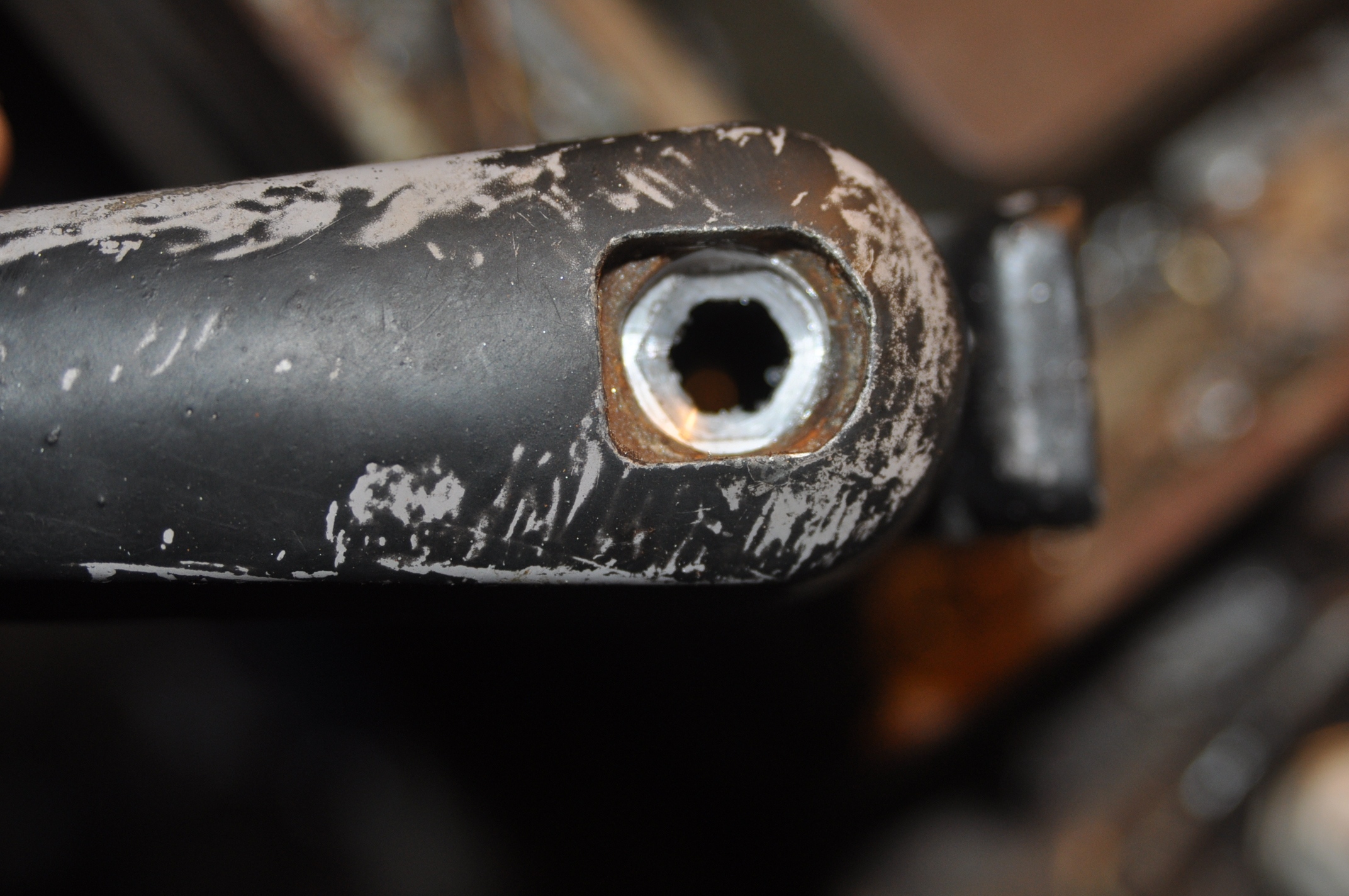 11) En regardant la photo précédente, on peut voir que la partie 6 pans de l'axe est conique, donc en insistant un peu plus avec la perceuse une clé six pans de 8 serait rentrée voir même plus selon mon insistance.