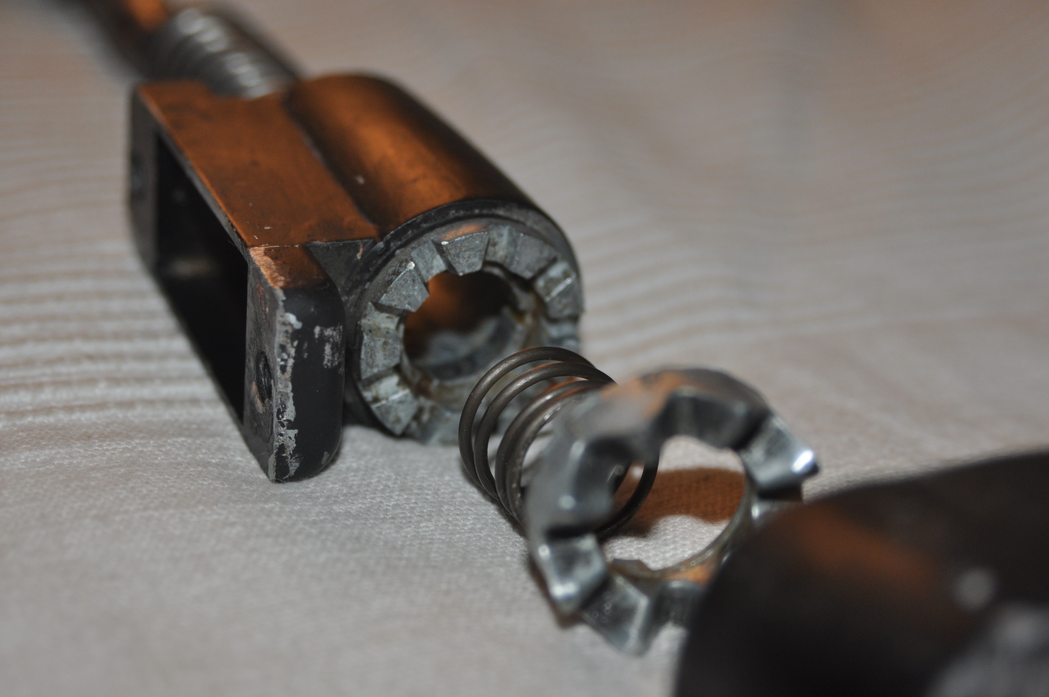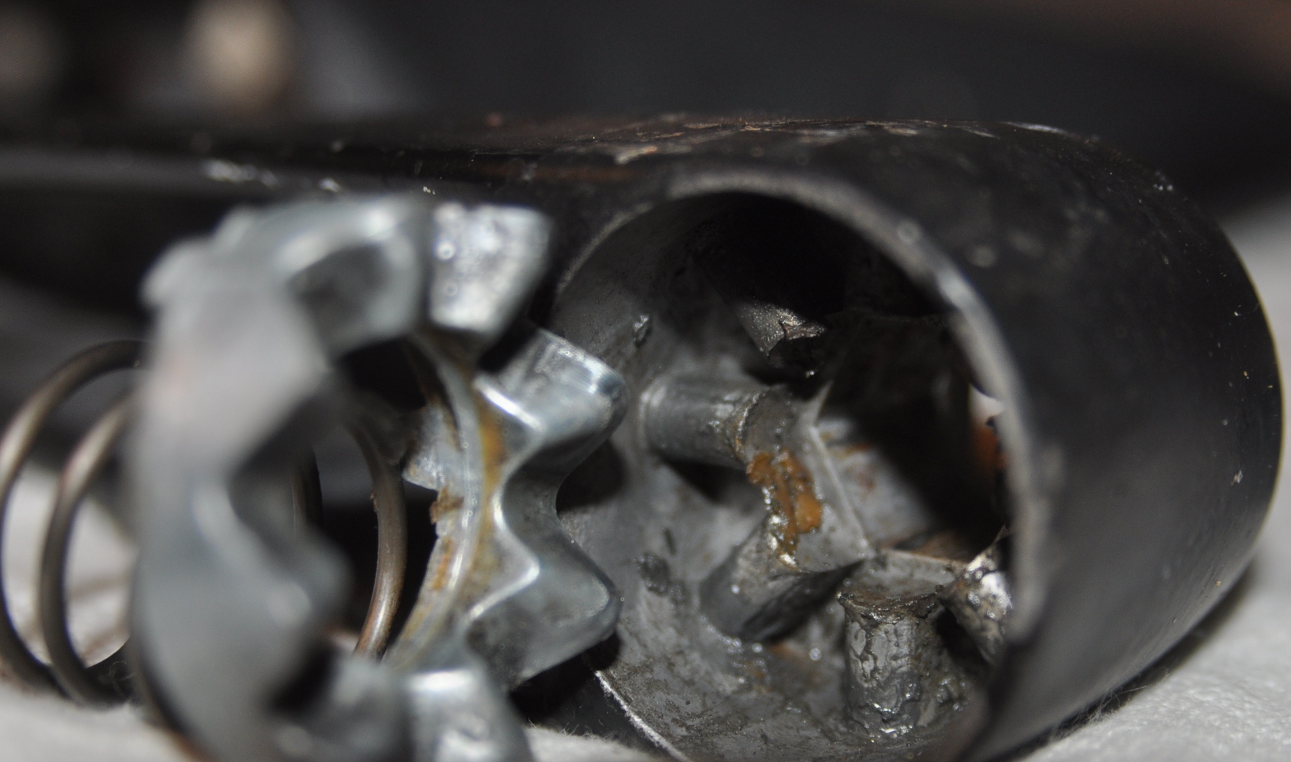 Ne pouvant agir sur le ressort et peu désireux de me lancer dans une chirurgie exploratoire "à la Lolo" j'avais envisagé d'intercaler une rondelle fendue entre la partie fixe et la mobile (d'épaisseur #1mm par exemple) mais d'après la photo N°12, cela ne paraît guère possible, à cause des "dents".