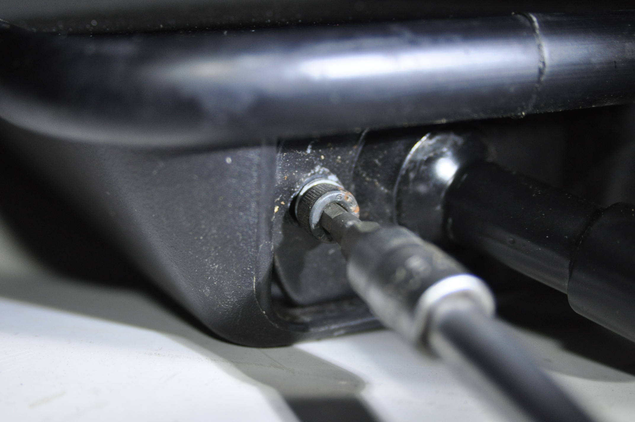 Personnellement, j'ai le plus sauvant rencontré des problèmes au niveau de la rotule du bras, soit pour démonter cette vis, qui sert au blocage et au démontage du support du miroir, soit au niveau de la patte tordue et qui ne sert plus la rotule.