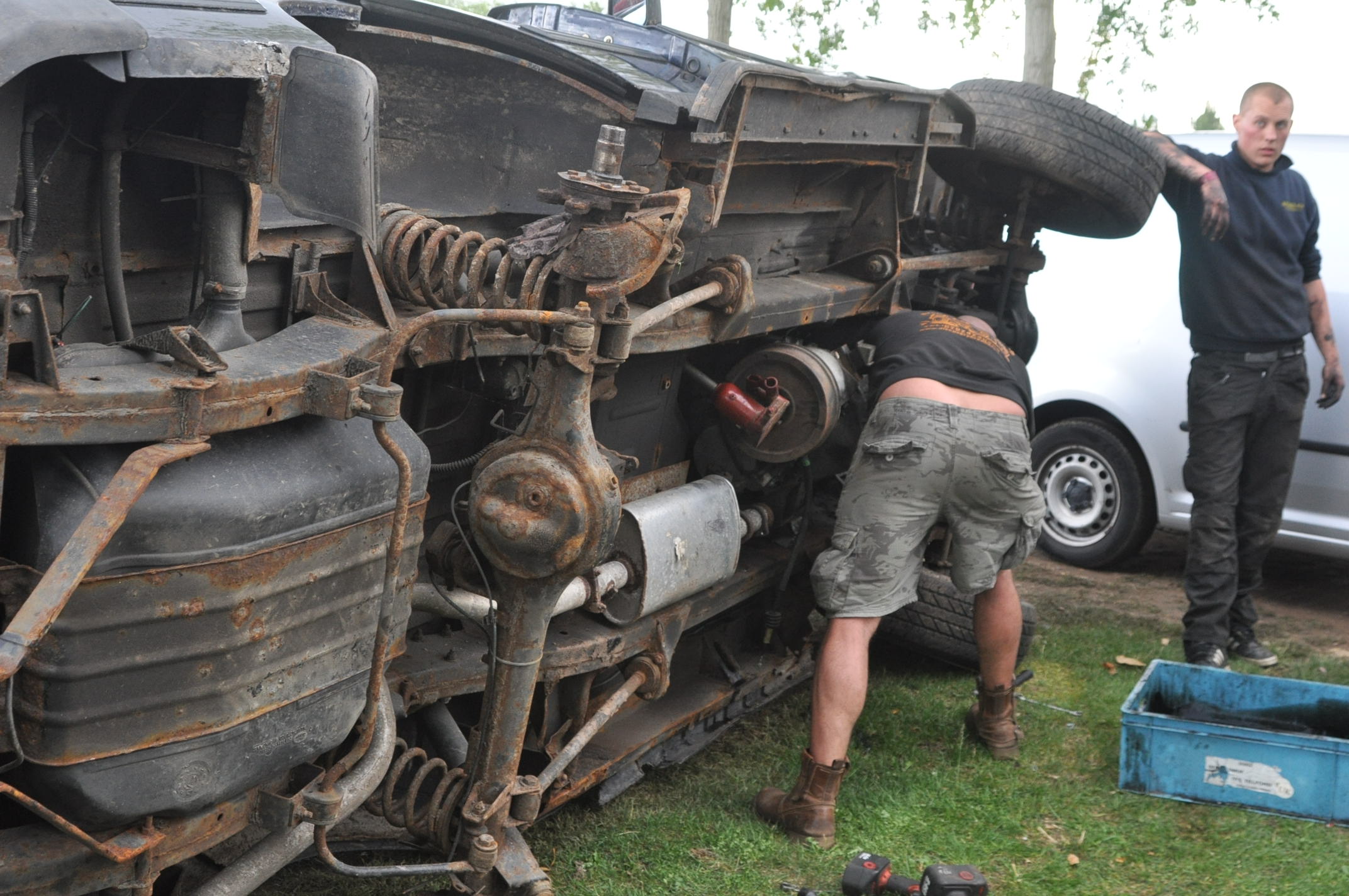 ensuite on avait ramené la nouvelle caisse par dessus l'ensemble moteur/boites.