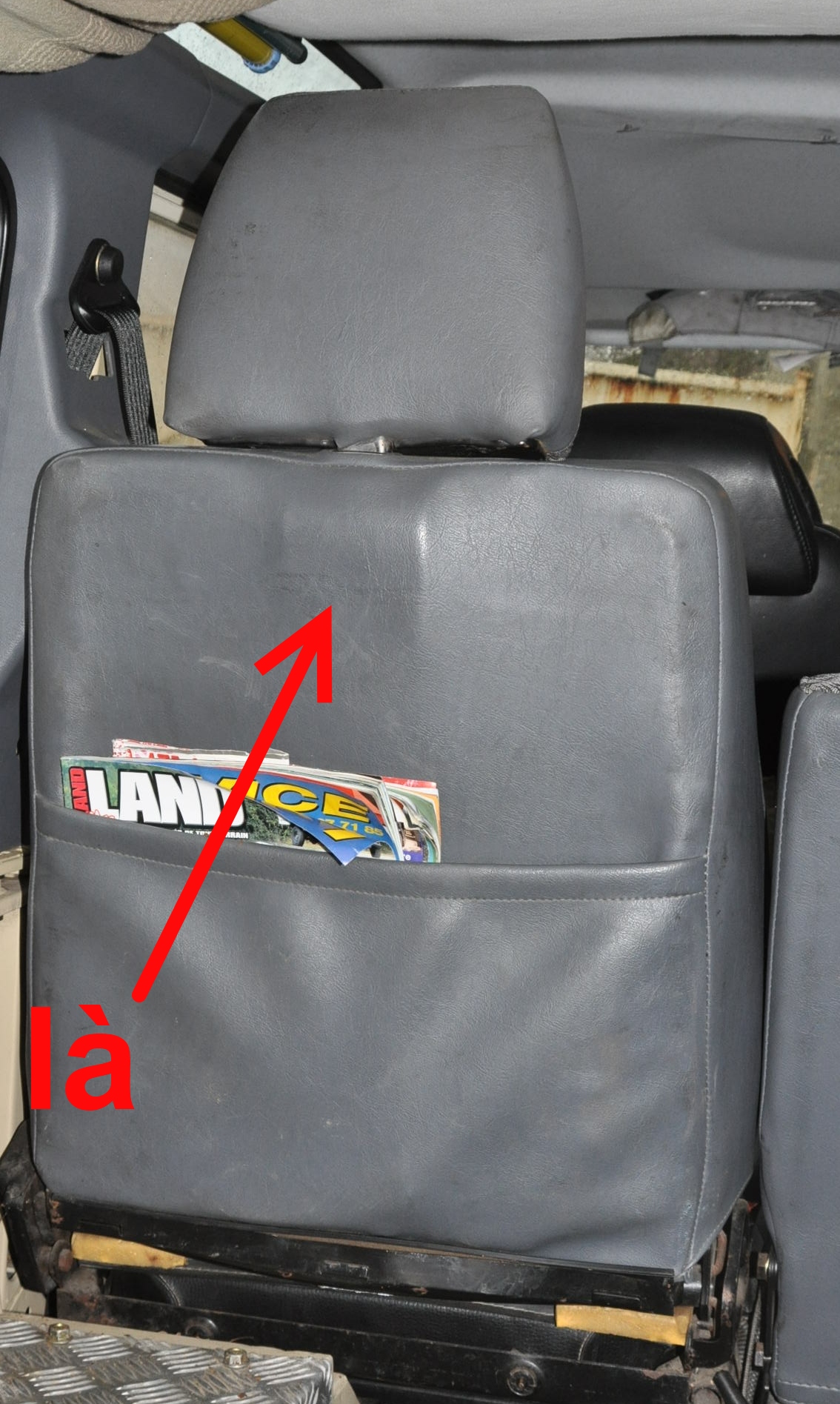 En faite c'est ça: C'est là : Donc si tu n'arrives pas à sortir l'appuie tête en tirant dessus, il faut accéder à l'ergot de blocage par l'intérieur, on ne va pas percer la toile tout de même. Et puis cela évitera d'arracher la bague de finition entre la tige de l’appuie tête et la housse du dossier de siège, car l'ergot l'accroche. Pour accéder à l’intérieur, il y a un jonc clipsable derrière au bas du dossier, avec un petit tournevis tu amorces le départ, puis tu tires dessus. Et là
