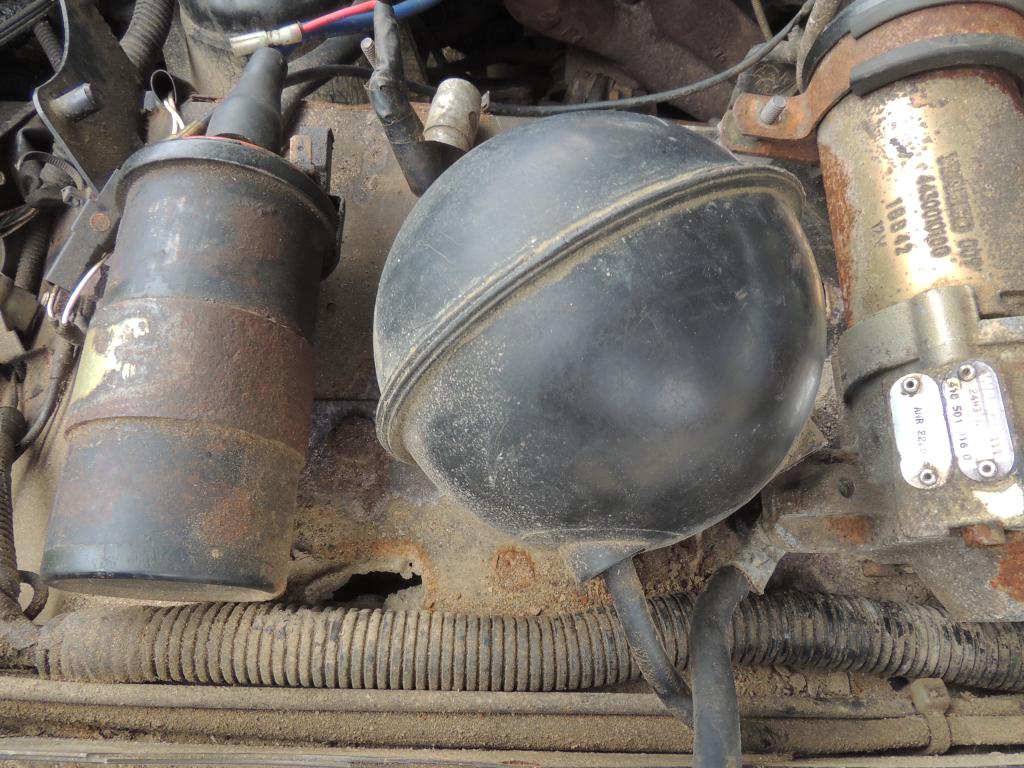 La boule noire, c'est une réserve de dépression pour actionner le volet d'entrée d'air du chauffage! Tu peux virer sans soucis, mais relie les tuyaux entre eux, ou au moins bouche celui qui va au plénum! (admission)