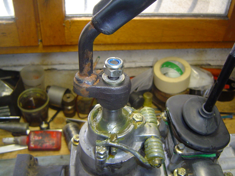 Ensuite on pose la boite sur l'établi, et on dépose les 4 vis de maintien du sélecteur de vitesses ainsi que les 4 vis de maintien de la commande de BT. Notez bien les longueurs des vis, il n'y en a pas 2 les mêmes sur la commande de la BT.