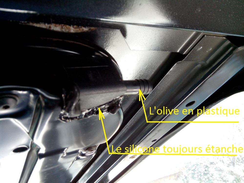 Le dispositif est identique pour le toit ouvrant arrière, les tuyaux souples débouchant dans les ailes arrière.