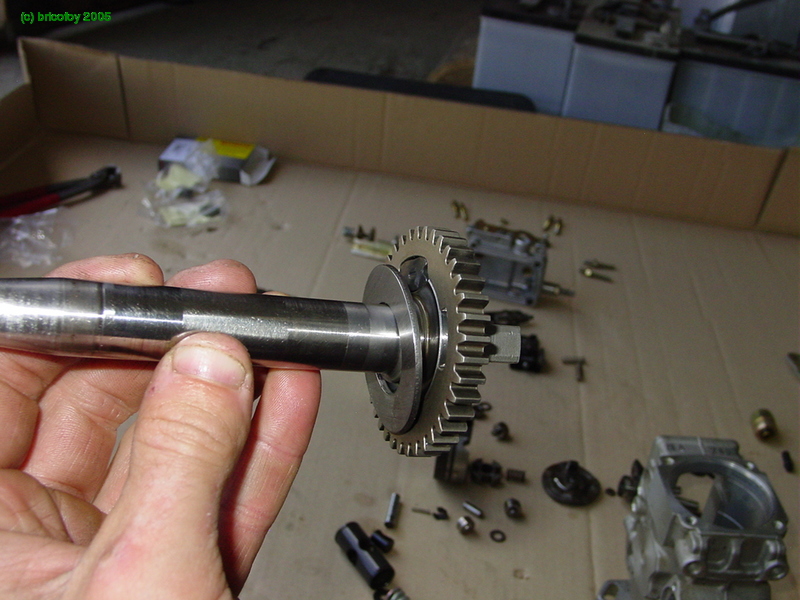 Je ne me rappelle pas avoir constaté ce jeu au démontage et je n'ai pas oublié la rondelle visible sur cette photo :