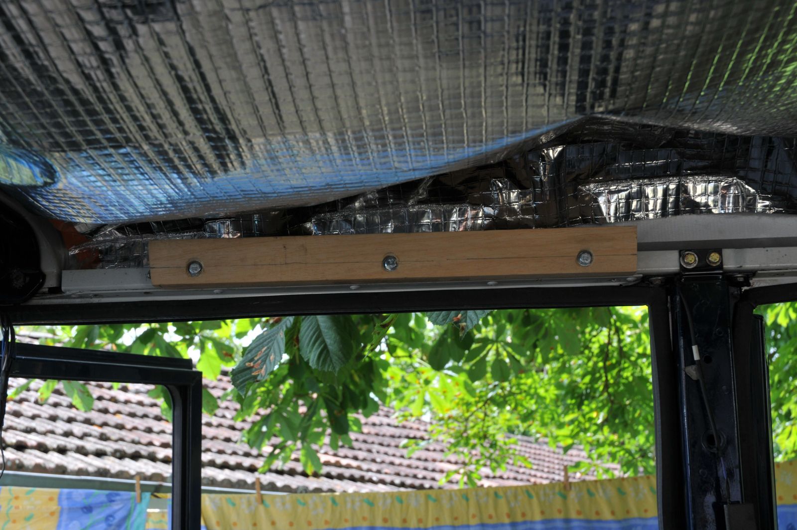 Le problème étant que le ciel de toit a un profil particulier, il s'éloigne de tout support dur au dessus de la portière.