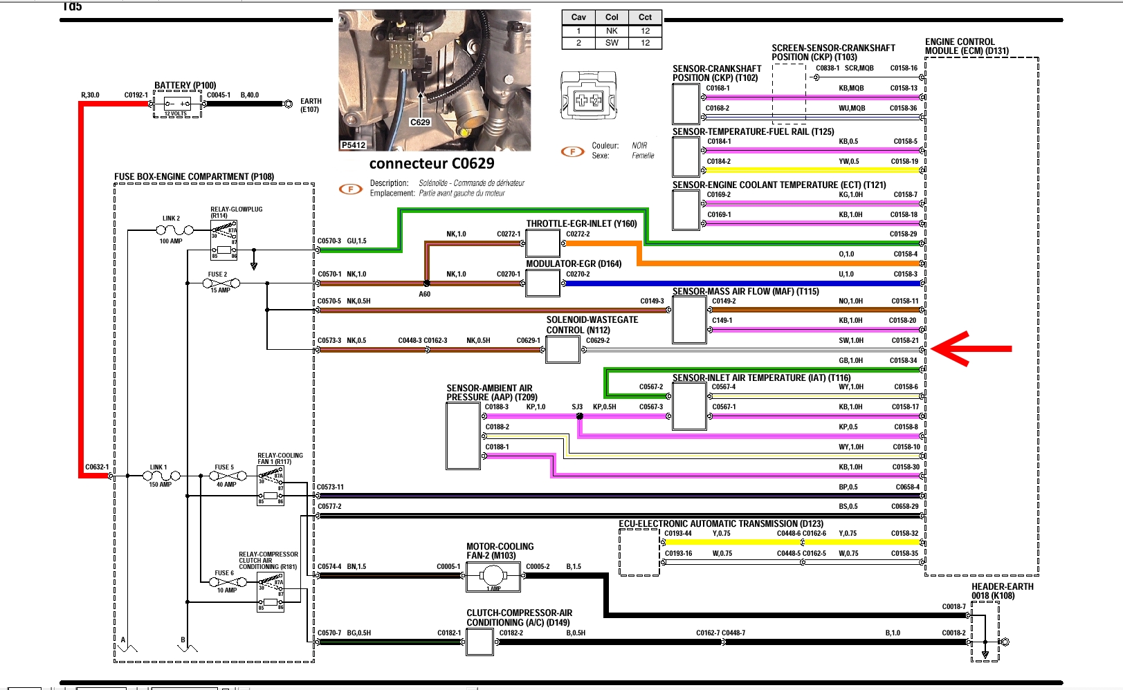 Or, la sortie de régulation du turbo sur l'ECU du Td5 n'est active que lorsque la pression est au max (série de masse pouvant atteindre 50Hz). L'ECU fonctionne à l'inverse de ce que désire.Pour résoudre mon problème, il me faut soit trouver une électrovanne qui laisse passer au repos (sans alimentation), et qui dévie la dépression (lors de son alimentation) lorsque la pression est au max ou trouver un système qui "inverse" le signal. Bien sur l'électrovanne d'origine du Disco ne fonctionne pas avec une dépression (mécaniquement).