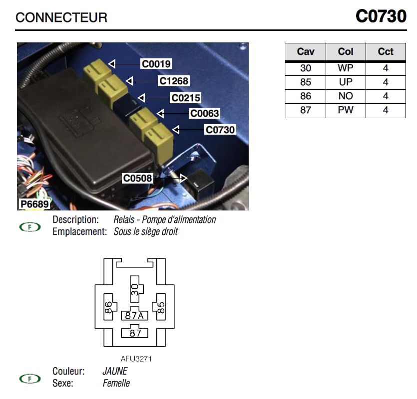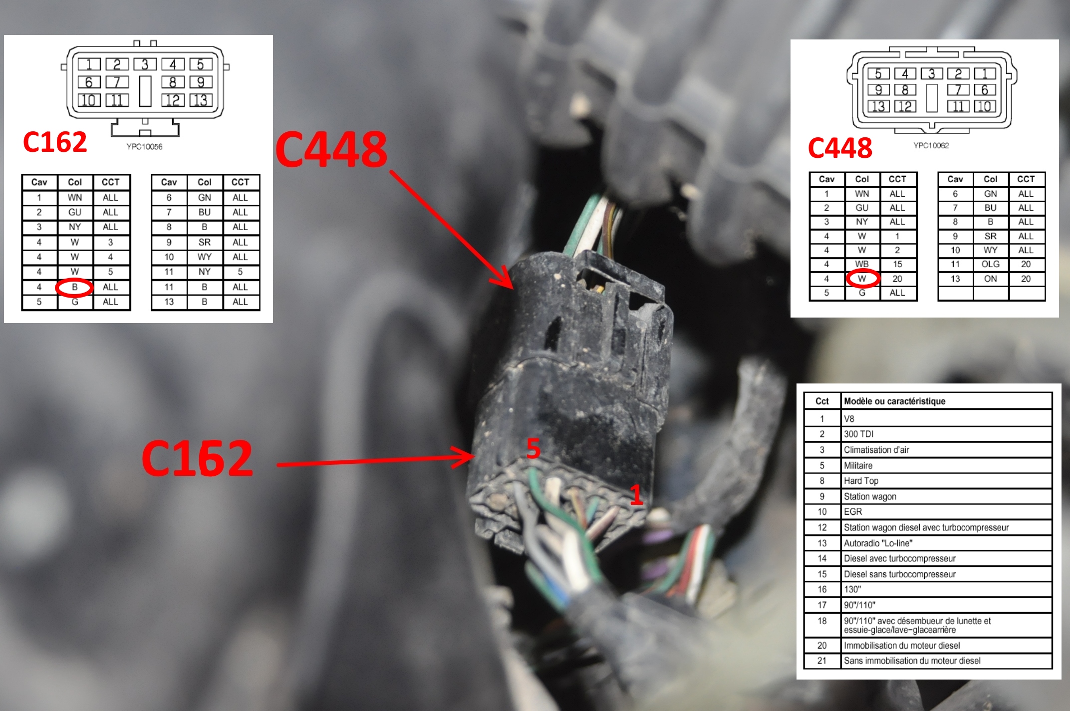 Regarde broche 4, il y a bien plusieurs cas possibles et là, je soupçonnerai une erreur ou une simplification drastique dans le schéma constructeur de l'immobilisateur concernant la couleur W (blanc) ou noir (B) et les connecteurs C162 et C 448 qui n'y sont pas mentionnés en cas de boitier immobilisateur, pourtant ils sont bien là.