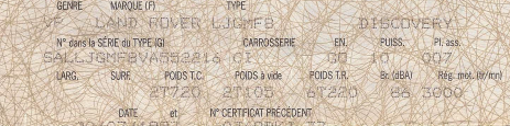 Il faudrait plutôt que tu ailles voir sur le discovery, le numéro de série poinçoné en usine sur une plaque dans le compartiment moteur et aussi sur le châssis.