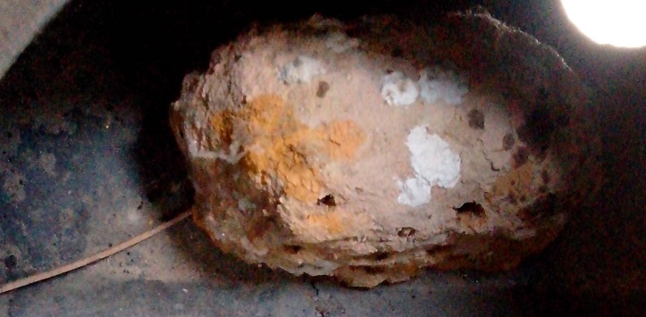 Quelque chose de caché dans un recoin du disco. Soit une réaction chimique oxydante, soit une oeuvre du règne animal ?