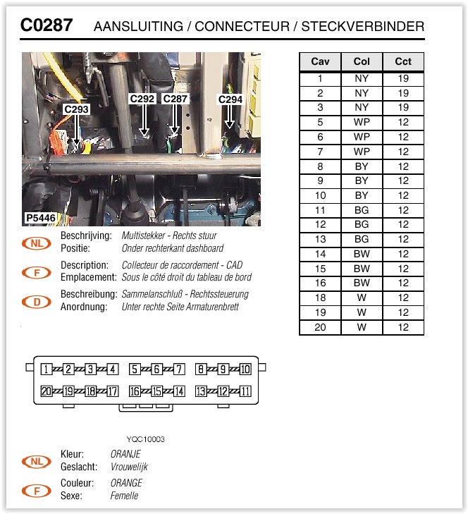 C0287 et C0291, sont des collecteurs de raccordement et non des connecteurs.