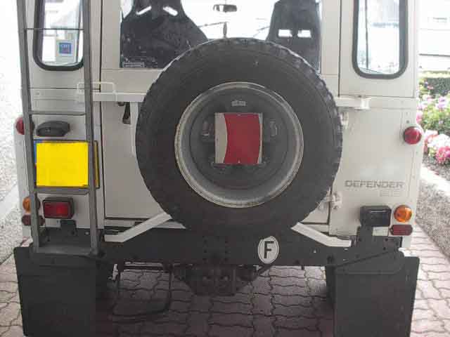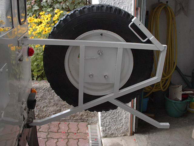 Sur un Defender, la roue de secours placée sur le porte-roue d'origine située sur la porte arrière, affaiblit les charnières.