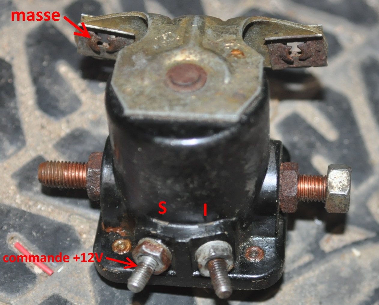 Sinon, la résistance de la bobine du relais, ou du solénoïde à proprement dit, entre S et la platine support métallique fait 3.5 Ω...