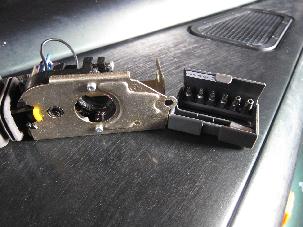 En démontant la bague bleue, j'ai une petite pièce métallique (petit Cylindre de 8mm de long) qui est tombé. Je ne sais pas où le re-positionner... Sans cette petite pièce, mes clignotants ne fonctionnent plus. Ca fait désordre... Merci de ton aide