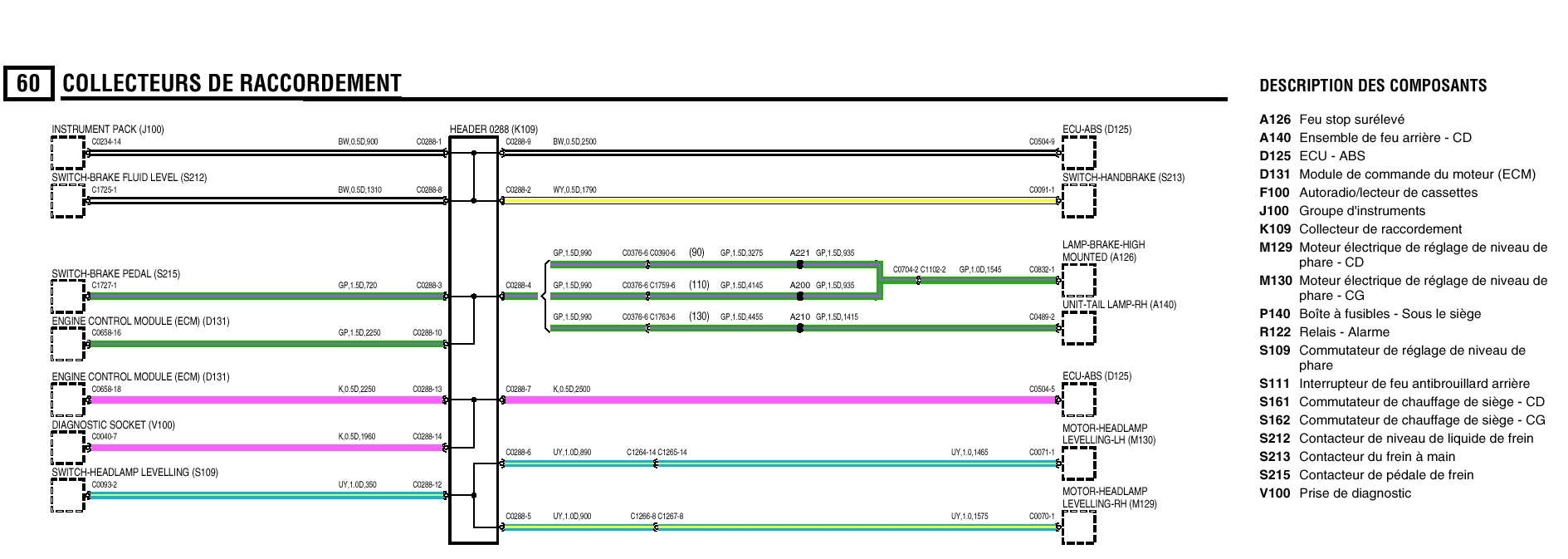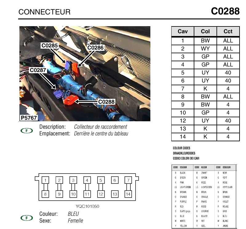 Son schéma avec les couleurs des fils: 5) Sa situation géographique, derrière la console centrale bien au fond, sous la barquette en plastique noir. vois cette inter où il est question d'un collecteur de raccordement: Problème de code/feux de croisement ne fonctionnant plus ainsi que le lien vers le problème de ned. A+