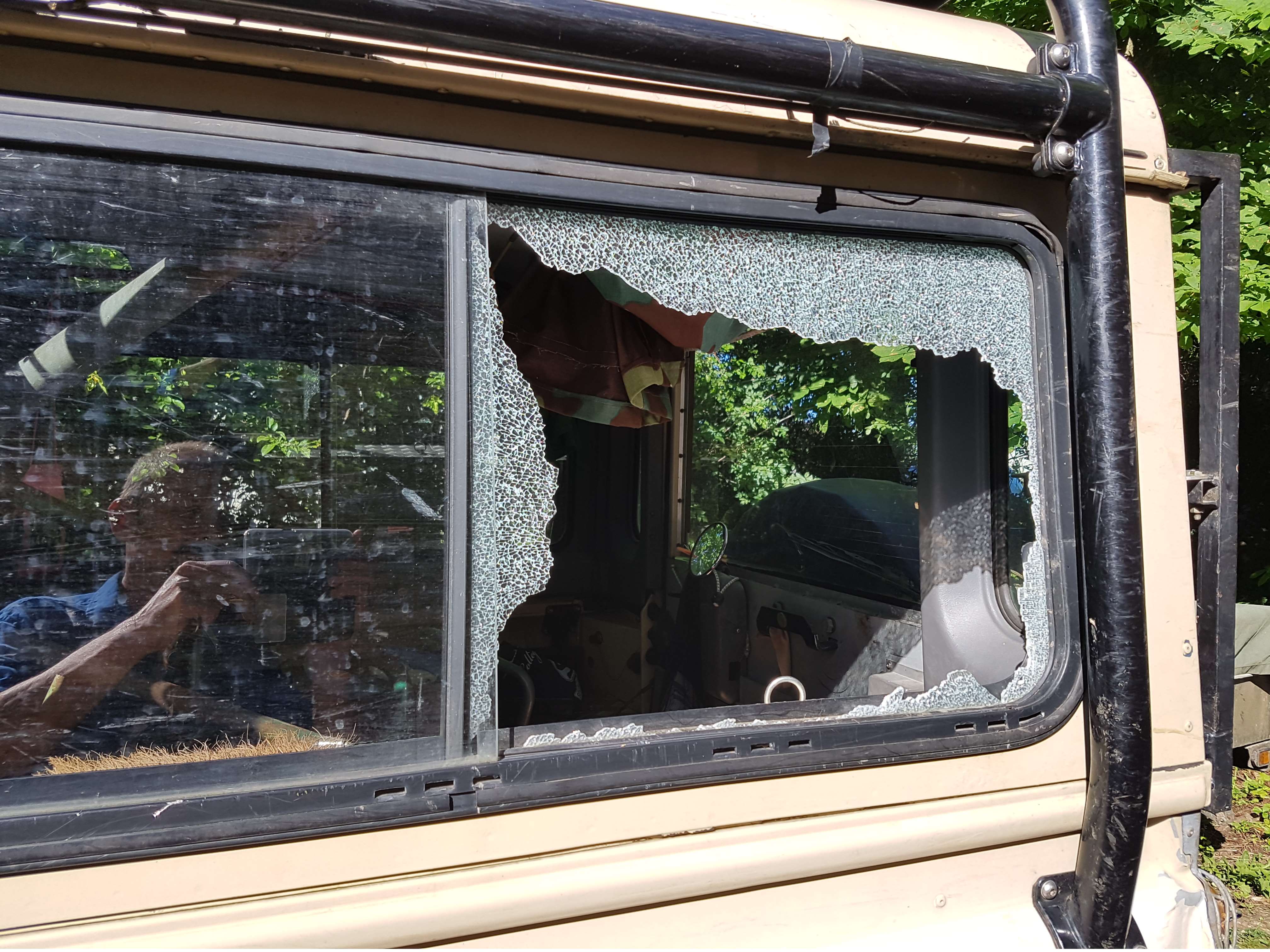Mais bien a cause d'une petite vis proprement inaccessible sans démonter l'ensemble du cadre qui supporte la vitre. Ce cadre est soit collé, sur les lands récents, ou soit riveté, on va dire à mi TD5 environ vers le tout début des années 2000 du coup, cela devient une toute autre paire de manches pour accéder a cette petite vis. Ce que tu peux faire pour obtenir un travail propre sur la partie coulissante, c'est démonter le loquet, juste deux vis cruciforme peut-être un peu oxydé dans l'alu... Tu en démontes une, puis l'autre, ou seulement la première vis car la partie intérieur peut recouvrir la découpe.