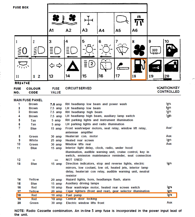 C'est singulier, car il est mentionné sur les documents du constructeur de 1987, peut-être sous les garnitures de sol. Quelles dont les origines de ton Range ? Débranche la pompe, enlève le fusible, puis mesure avec un Ohmmètre la continuité entre le fusible et la cosse de pompe.rr200 a écrit : j ai vérifié sous le siège, pas de contacteur à inertie.