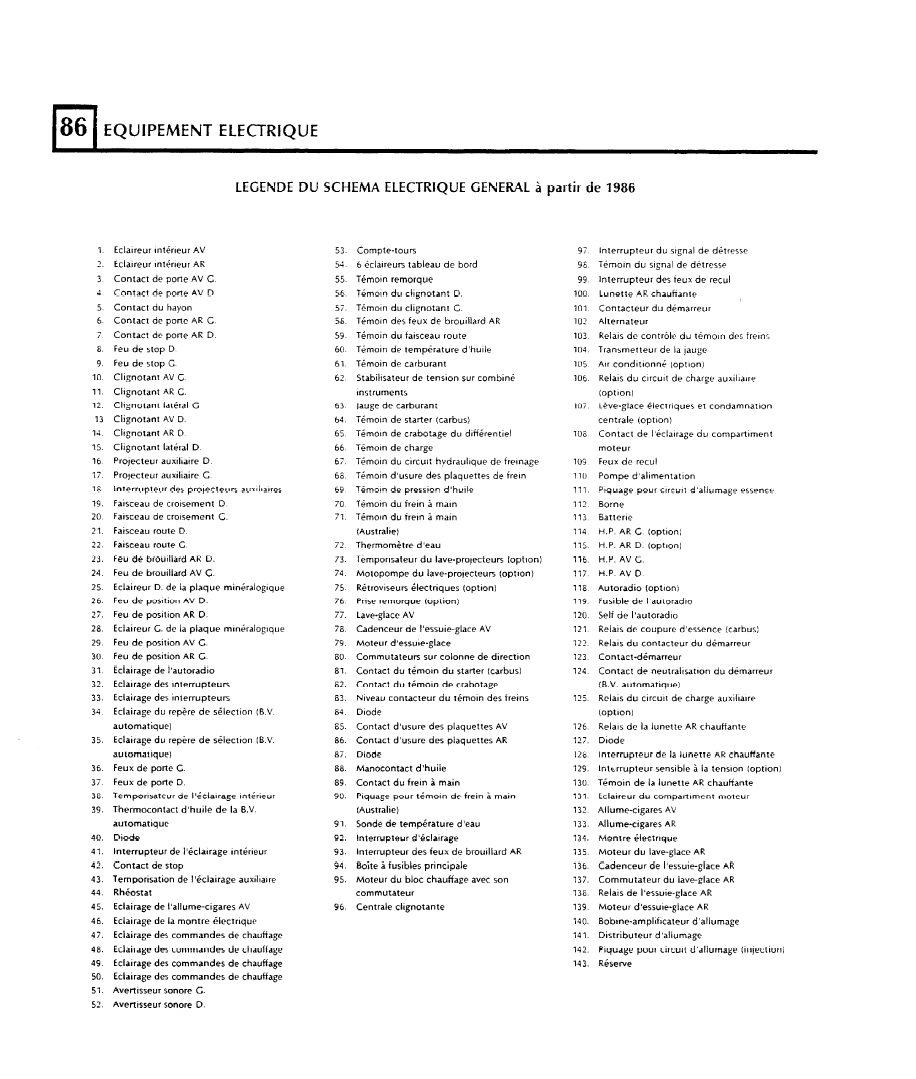 le schéma 1986 : les légendes 1986 : Une chose m'intrigue sur le schéma de 1987 première mouture (sans contact à inertie), c'est la façon dont est connectée la masse du relais de coupure à travers la sonde de pression d'huile. Cela amène une question, est ce que ton voyant d'huile fonctionne correctement ?