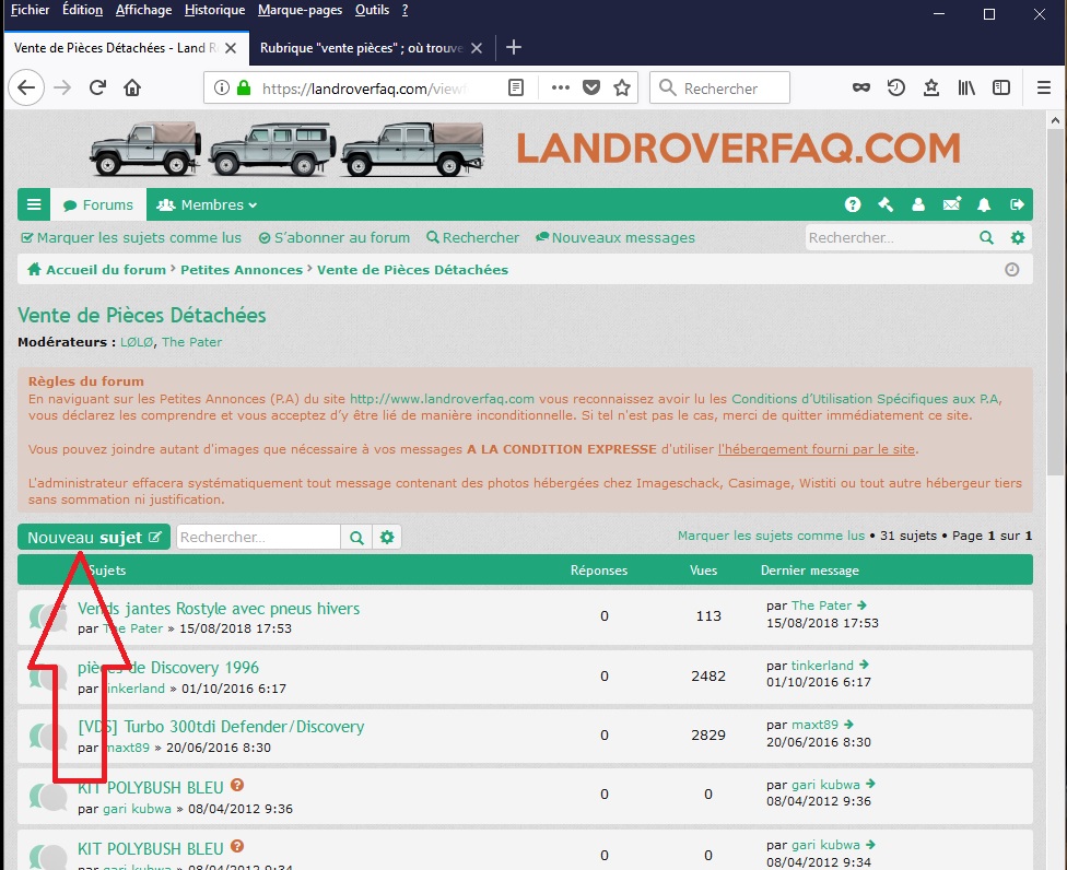 Rubrique "vente pièces" ; où trouver "nouveau sujet" ?