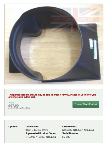 Avaloir ventilateur defender 200 tdi introuvable