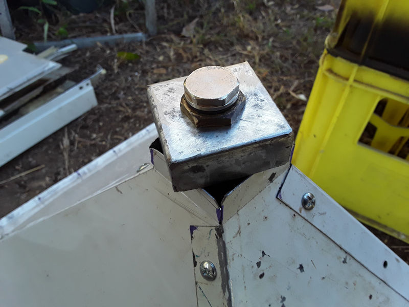 Je découpe en forme carré, je rabats les côtés, je soude et ça s'adapte sur le sommet de la trémie.