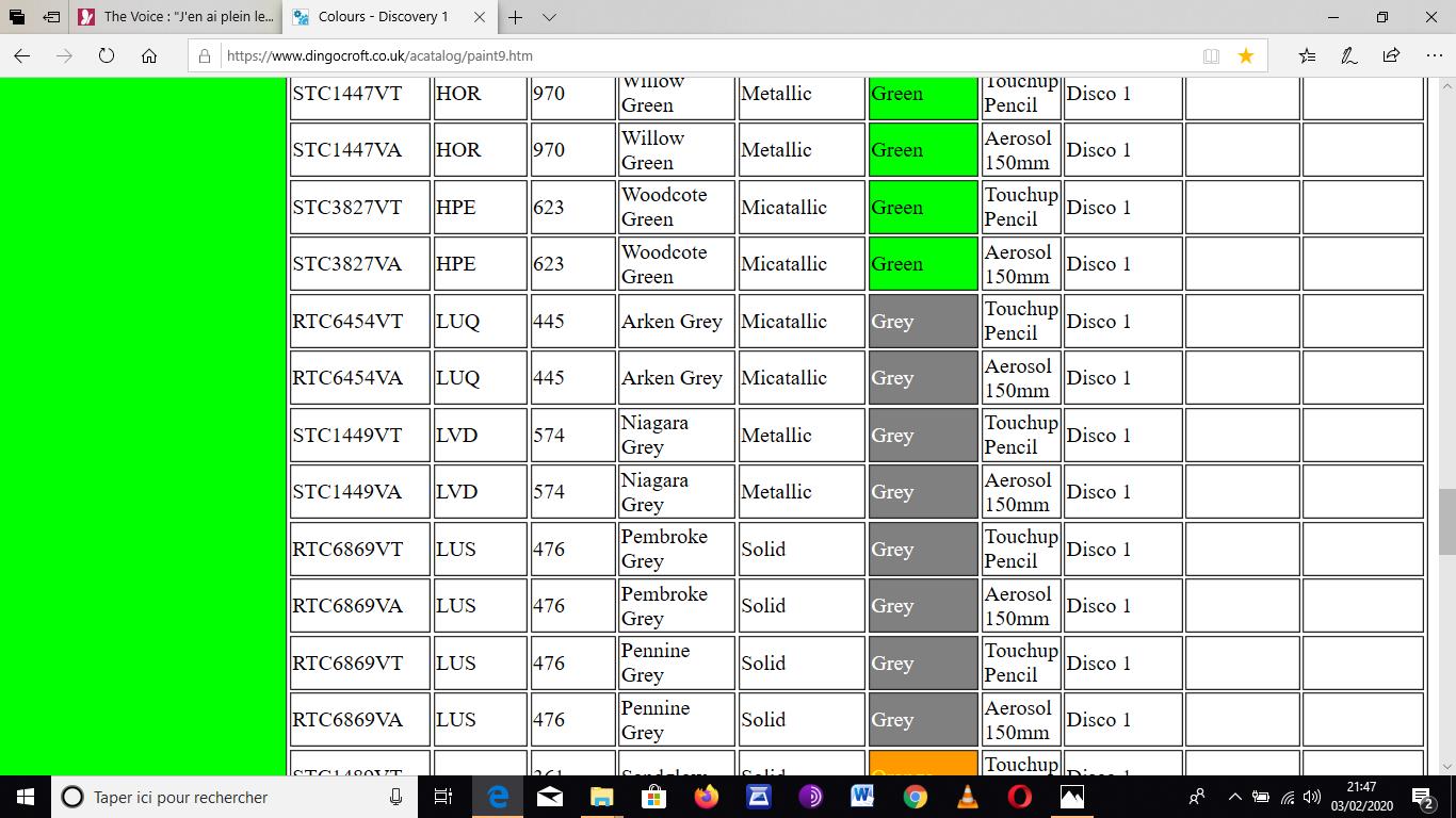 L'ennui, le code couleur n'est pas renseigné sur la plaque constructeur et la concession land rover su coin avec mon numéro de série ne trouve pas de code couleur.