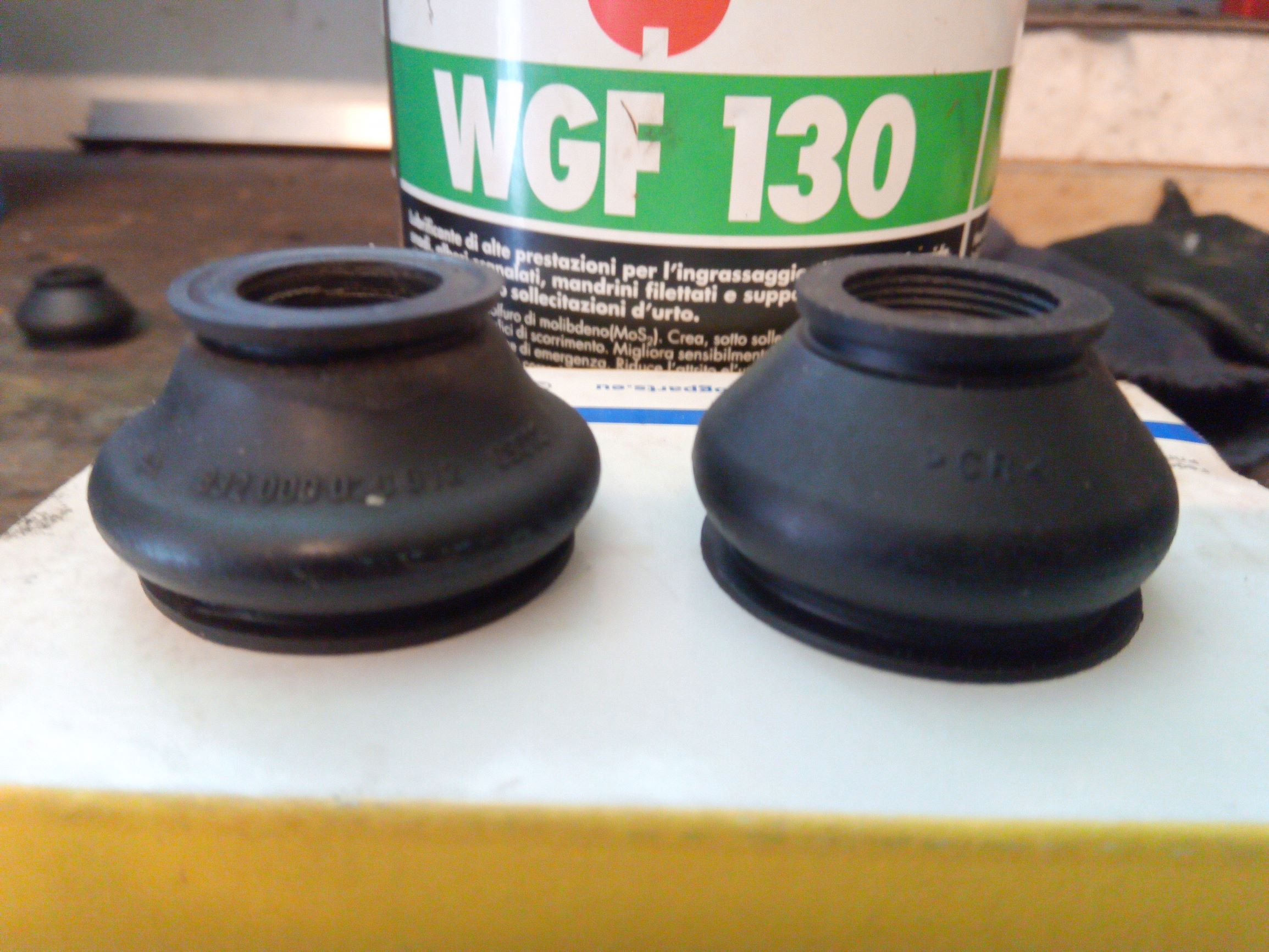 A gauche soufflet d'origine percé à droite le Womi 30x24 mm G17 . 30 c'est le gros diamètre en mm , 24 mm la hauteur du soufflet et G17 le petit diamètre en mm .