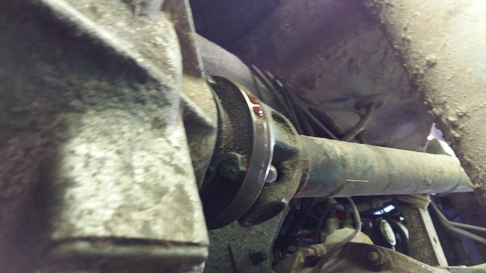 En regardant de plus près , j'ai trouver des gouttes d'huile sur le cardan qui part de la boite de transfert et vers l'essieu arrière.