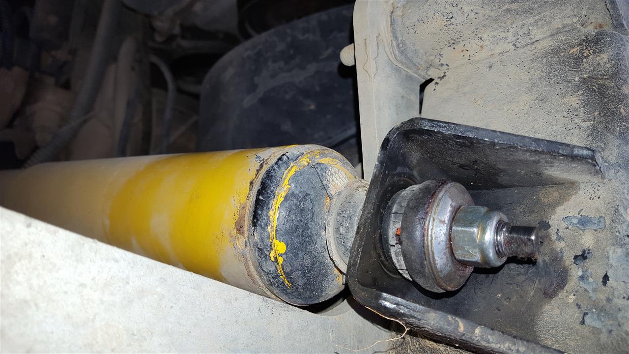 J'ai constaté lors d'un tour d'inspection de mon DEF TD4 la perte d'un silent-bloc de l'amortisseur de direction (silent-bloc noir genuine et non jaune de Shitparts):