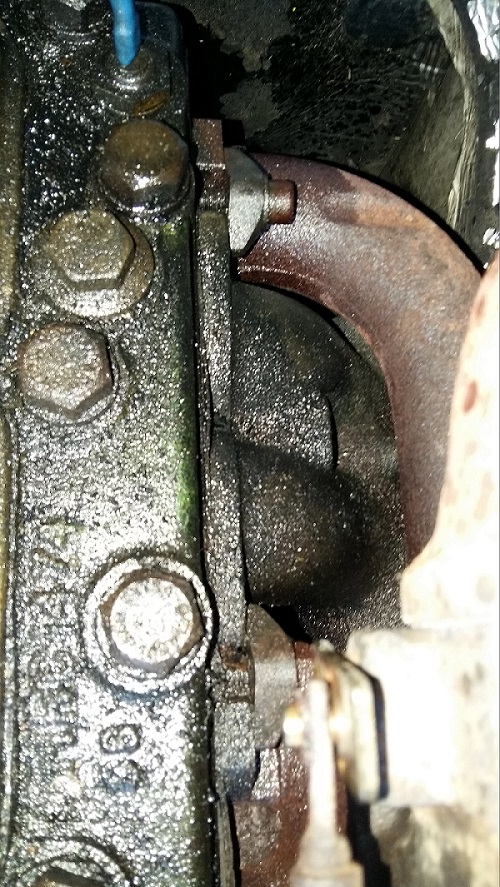 Ce matin, je viens de me rendre compte que j ai une fuite de gaz d'échappement au niveau du collecteur sorti haut du moteur.