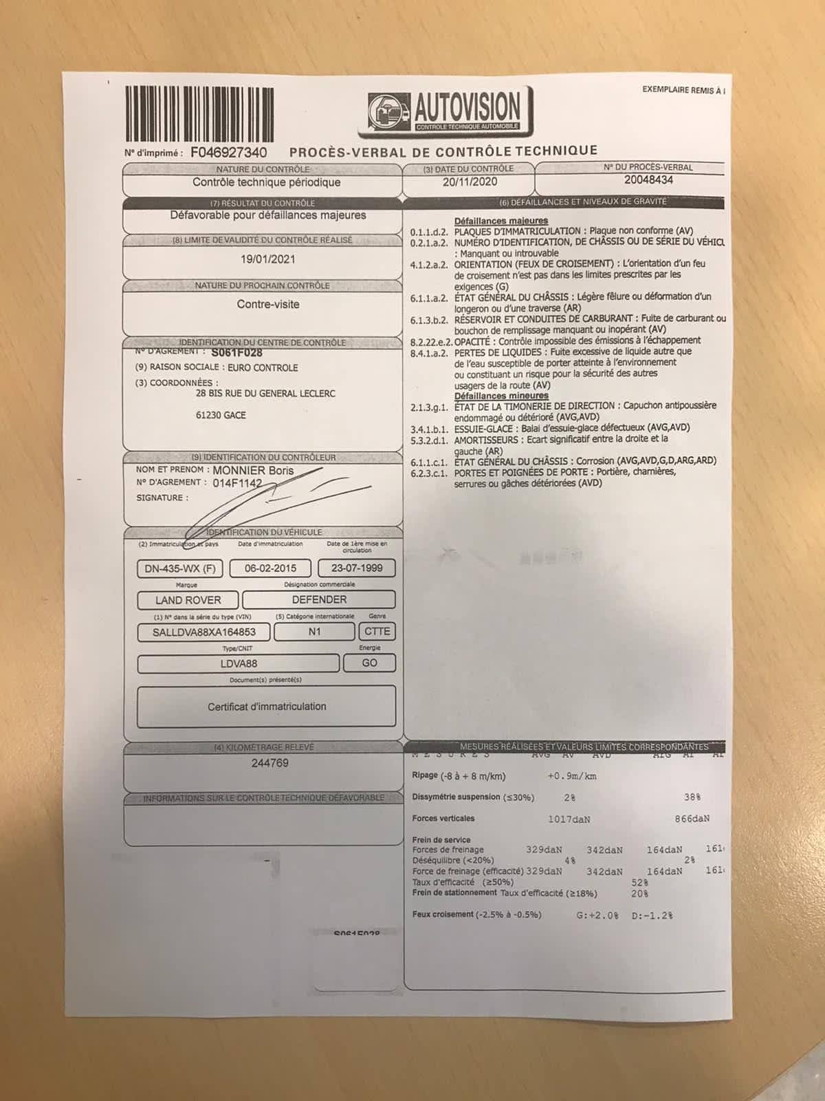 Voici le contrôle technique :