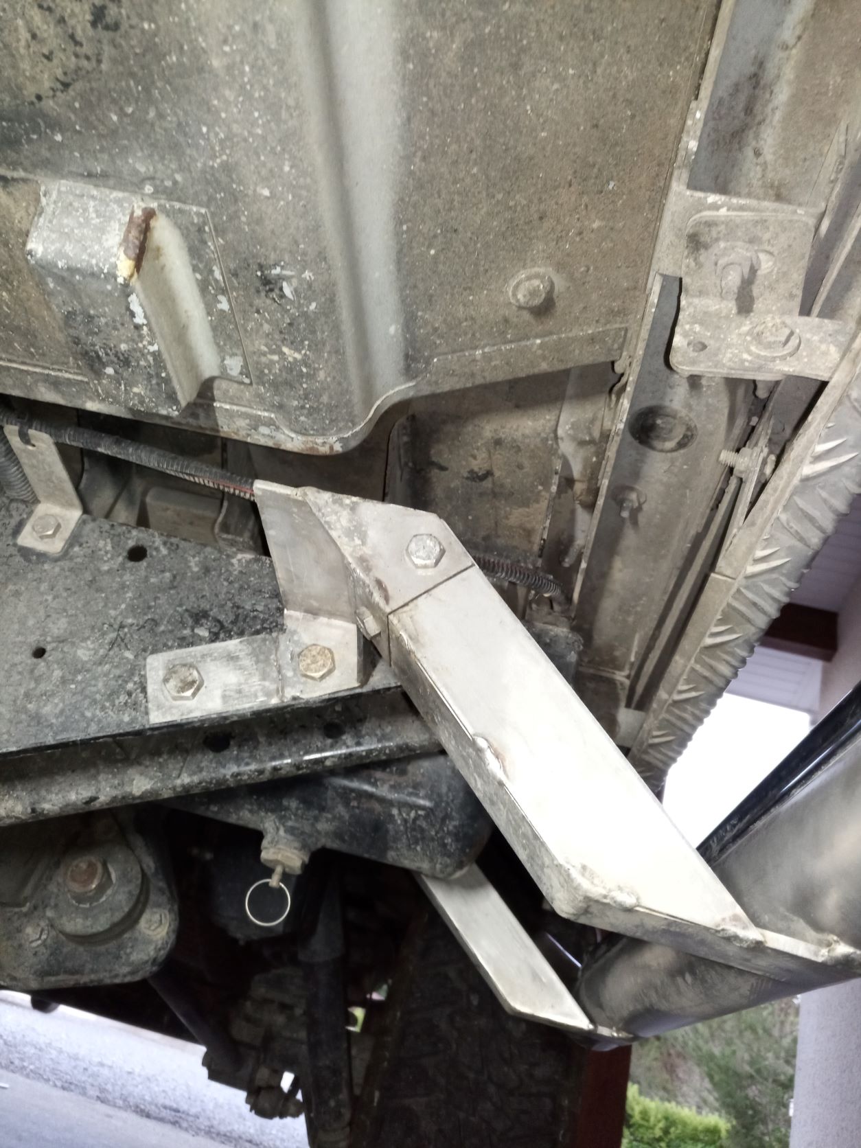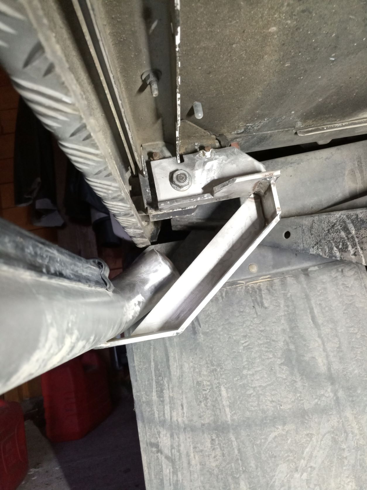 J'ai viré les marchepieds en ferraille qui n'étaient pas au top et rouillés pour en refaire en inox. Les nouveaux sont plus pratiques, plus légers , les fixations sont plus rigides. Ils sont juste au raz en limite de dépassement de la carrosserie . La seule chose que j'ai conservé des anciens marchepieds ce sont les enjoliveurs protecteurs de tube en plastique que j'ai dû reformer au pistolet thermique car les tubes sont plus gros (tube de 60 mm contre 52 mm).