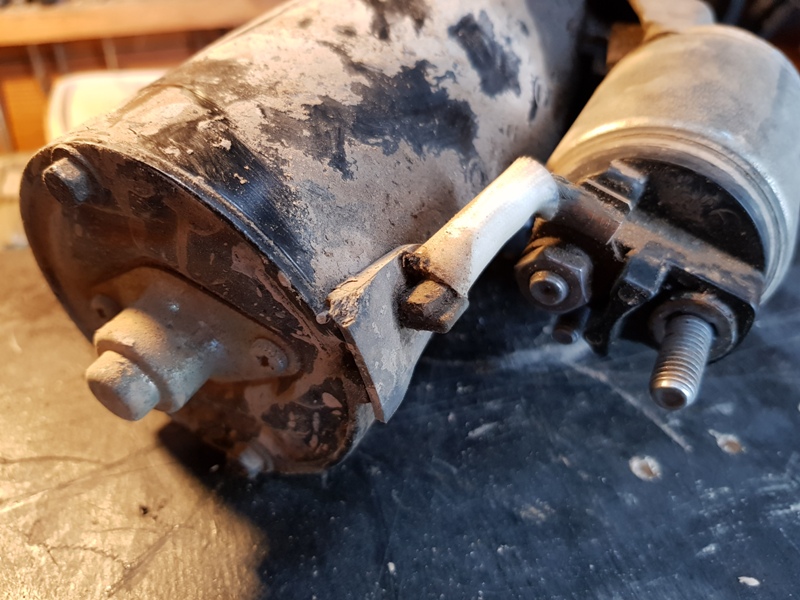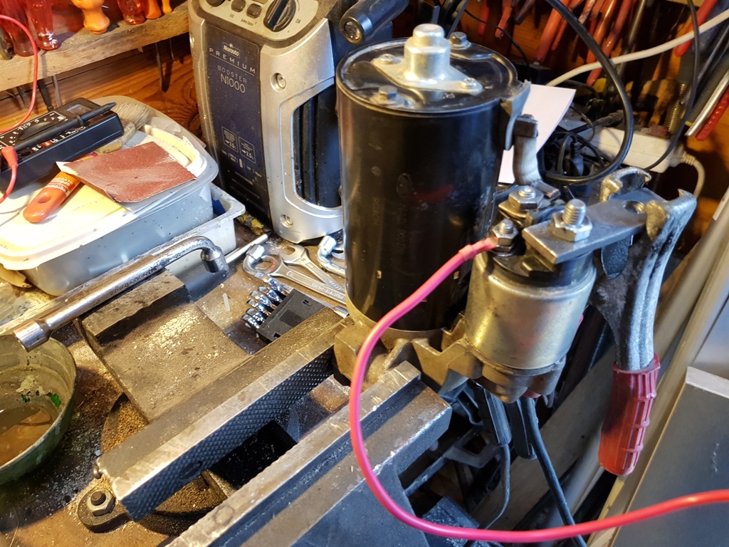 Il est possible de faire un test du démarreur sur établi. Une petite plaque de métal fixée sur l'arrivée 12 V et une cosse vers une une batterie.