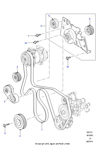 - de remplacer les 3 poulies fixes (n°3, 8, 9) + le galet tendeur et sa poulie (n°4)