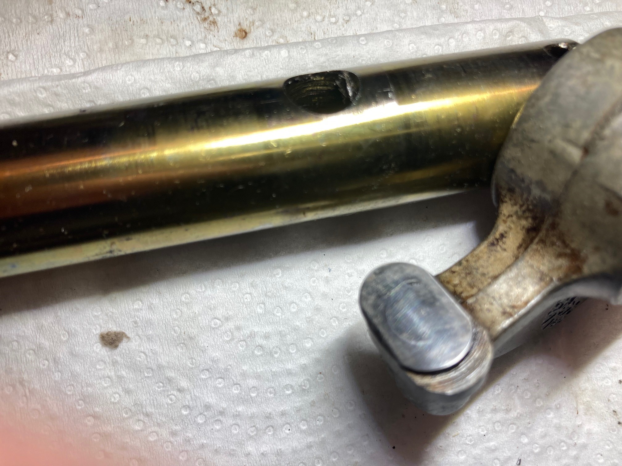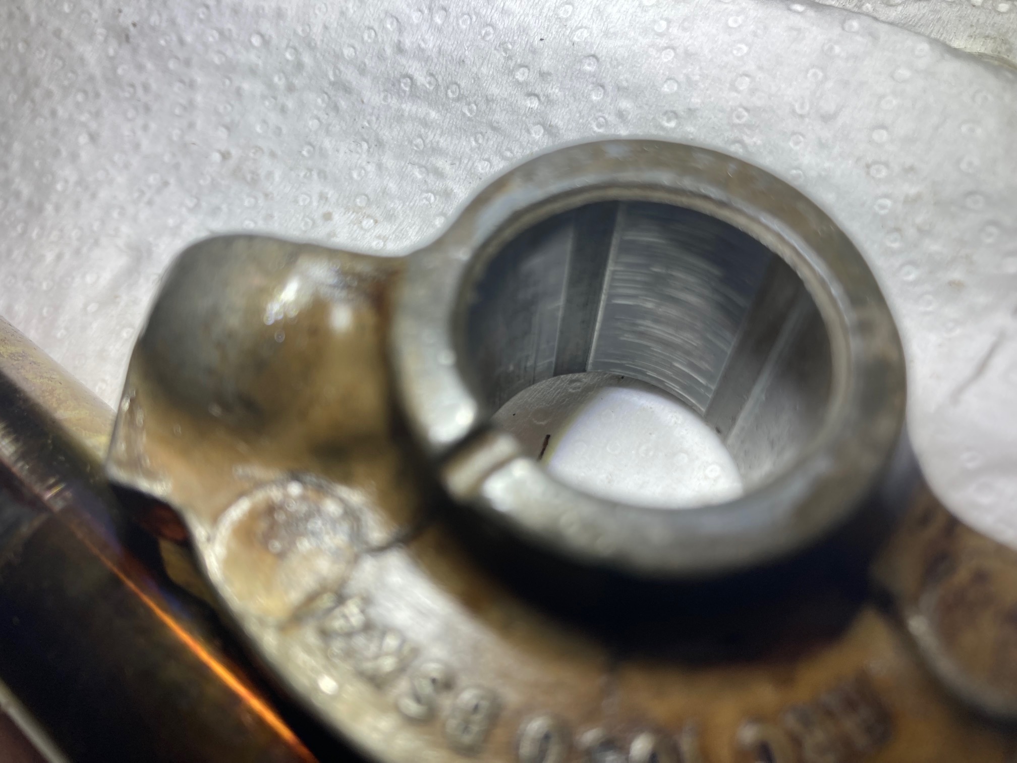 Pour le moment je m'attarde sur les 2 rampes de culbuteurs qui étaient noircies de suies. les axes présentent des rayures tout comme les alésages de culbuteurs (mais pas dramatique à priori) et les coussinets de culbuteurs sont marqués par les queues de soupapes mais il reste pas mal de matière.